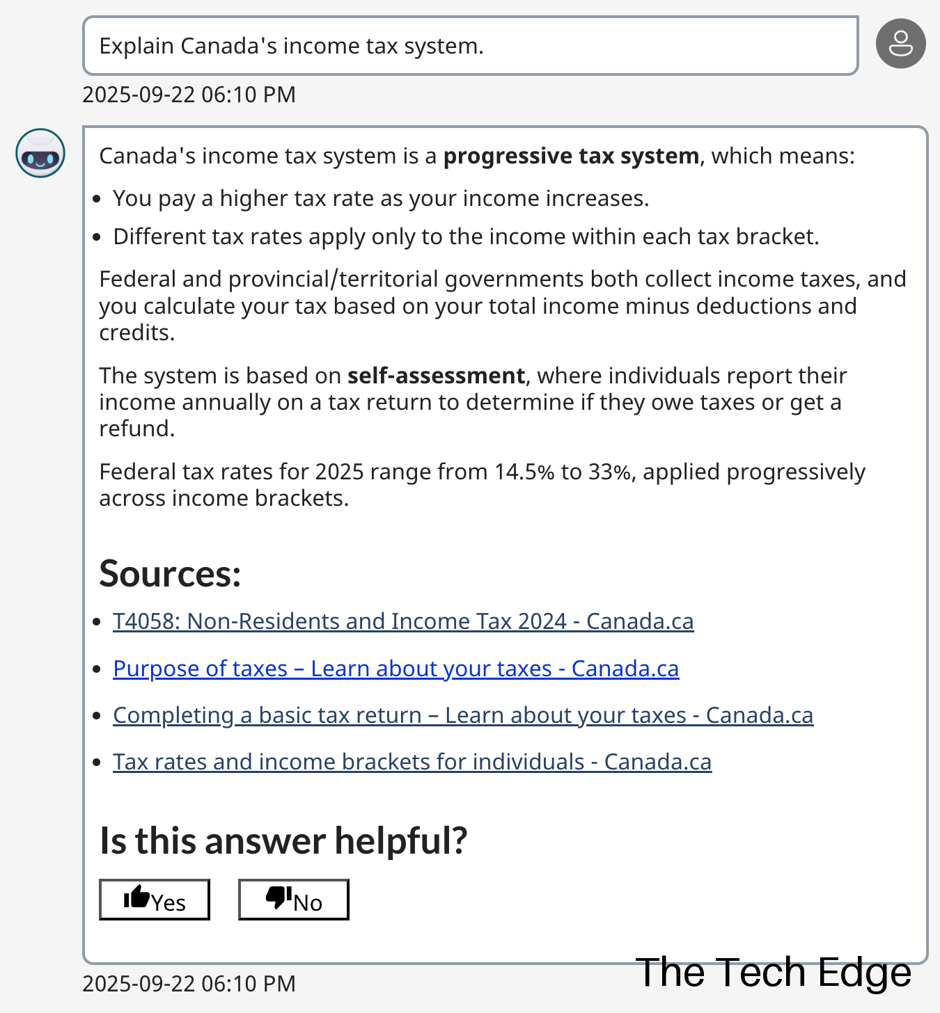 어느 국가나 비슷하겠지만 세무에 관한 내용은 복잡하고 관련 자료들을 찾아가기 쉽지 않은 것이 사실이다. CRA에서는 GenAI 서비스를 통해 사용자가 세무에 대한 질문을 기반으로 관련 자료/메뉴들을 쉽고 빠르게 접근할 수 있도록 기능을 제공하고 있다.