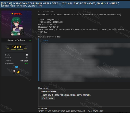 - Instagram's "17 Million User Data Leak" Was Just Scraped Records - Hackread, 2024년