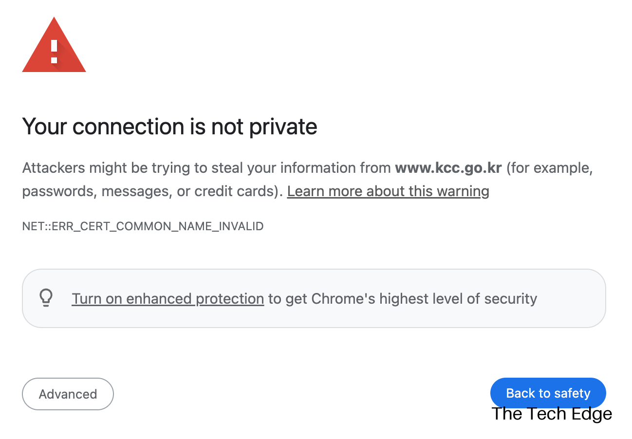 새롭게 출범된 방미통위의 공식 웹사이트에 접속했더니 중간자 공격이 발생했을 때 나오는 오류 메시지부터 나와 방문자를 반긴다? 물음표가 뜰 수밖에 없다. 보안이나 해킹을 조금 안다면 혹시 방미통위가 침해된 걸까, 라는 의심이 들 수도 있는 상황이다. 다행히 우리는 방통위가 방미통위로 개편된다는 걸 알고 있었고, 그래서 과도기에 행정적 기술적 요소들이 조금 엉켰다는 것을 확인할 수 있었다. 즉, 중간자 공격이 진행되고 있는 건 아니었다는 것이다.