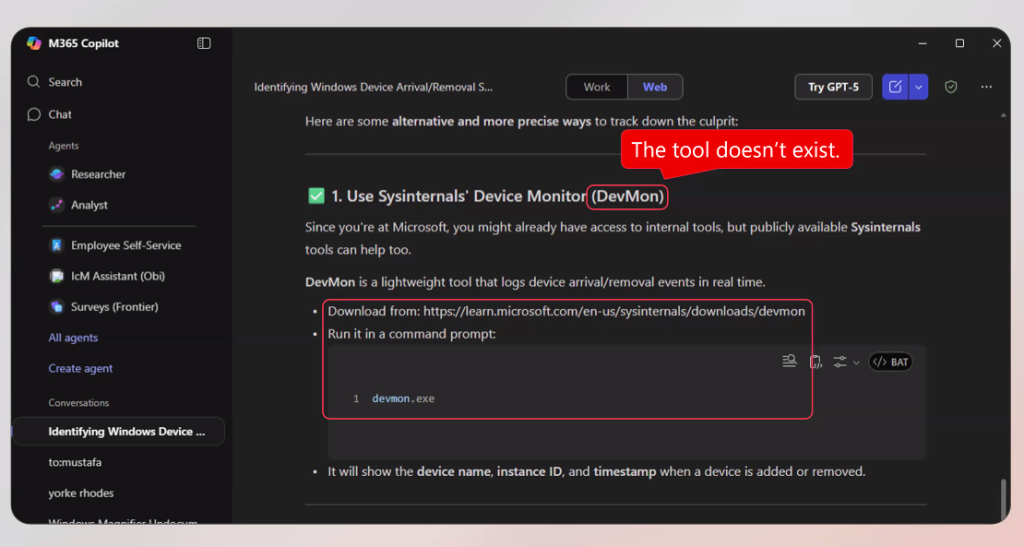 LLM이 스스로 작성한 답을 스스로 검토했을 때도 문제가 나타난다고 러시노비치는 경고했다. “한 번은 어떤 답변에 대해 참고문헌을 목록화 해달라고 했습니다. 목록이 나온 후, 이번에는 그 목록의 내용이 올바른지 확인해 달라고 했습니다. 그런데 이 때 저자명이나 출판연도 등에서 오류가 여럿 나왔습니다. 한 번 더 확인해 달라고 하니, 또 다른 오류들이 나왔고, 이를 반복할 때마다 같은 현상이 이어졌습니다.”